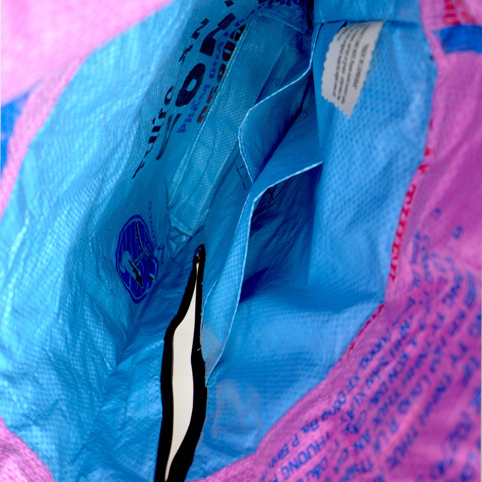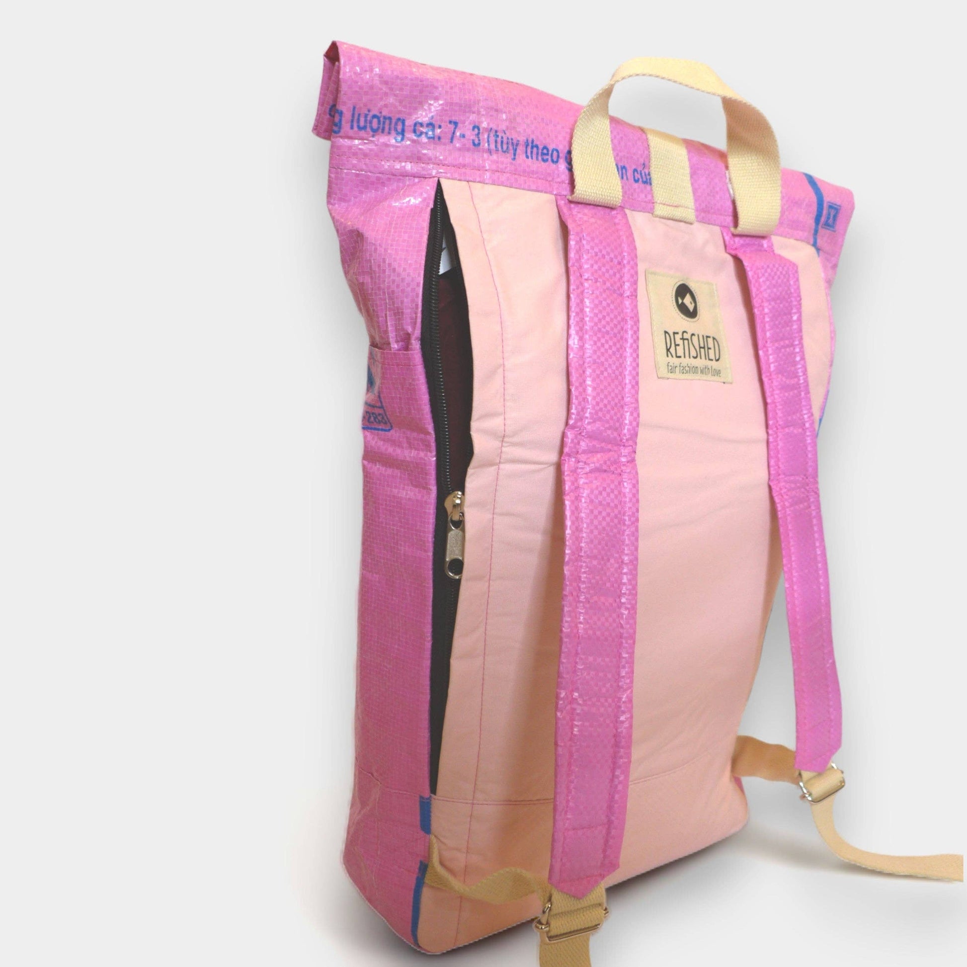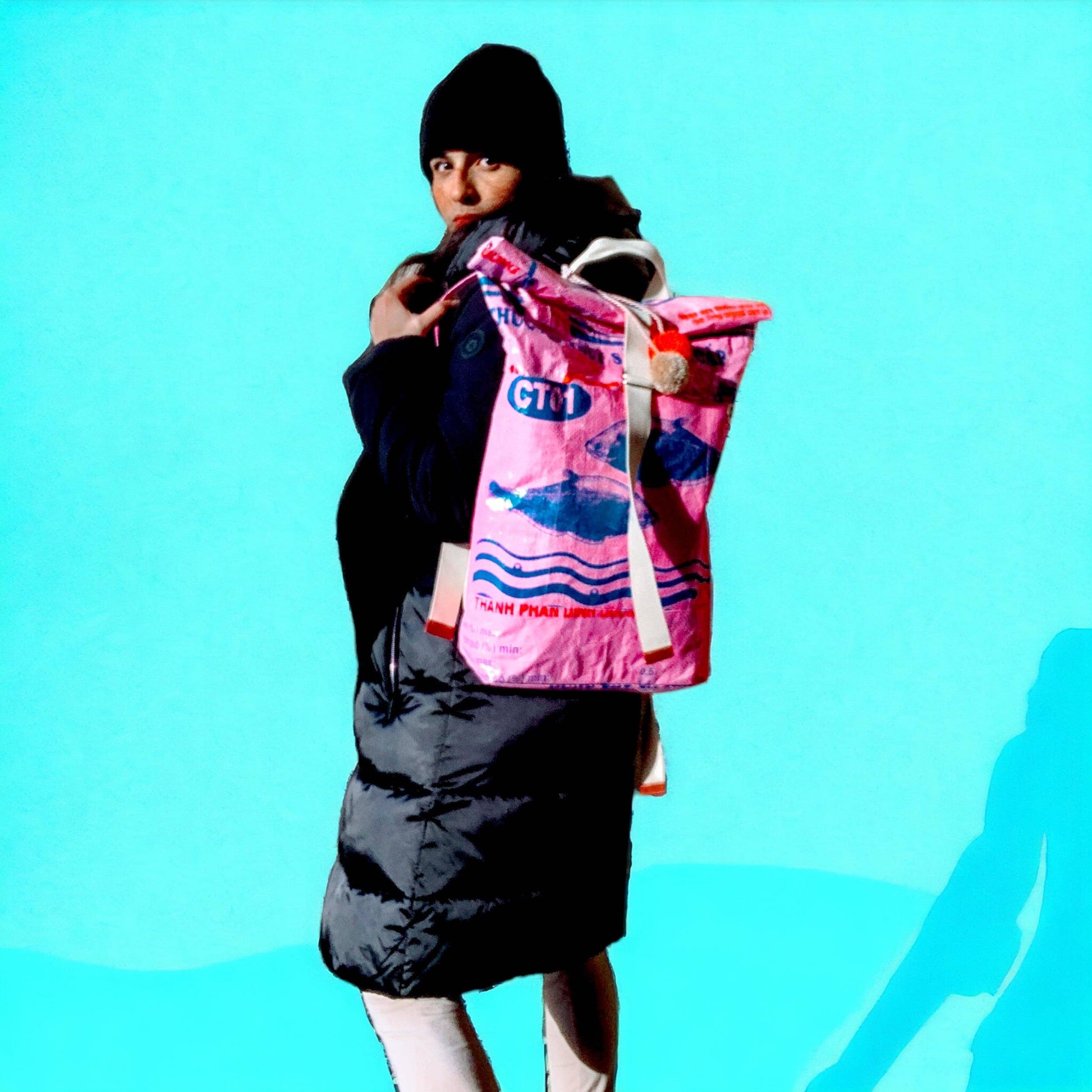 Cooler Rucksack aus benutzten Fischfuttersäcken, gut geeignet für den Urban Jungle. Es passen Laptop und Dokumente perfekt hinein. Einfach ein Hingucker! MADE BY: Put Sophea > MADE OF: upcycelte Fischfuttersäcke MADE IN: Phnom Penh, Kambodscha GRÖSSE: 45 x 30 x 12 cm (zu) 62 x 30 x 12 cm (offen) GEWICHT: ca. 400 g HINWEIS: Innenfarbe kann vom Foto abweichen (je nach Verfügbarkeit)