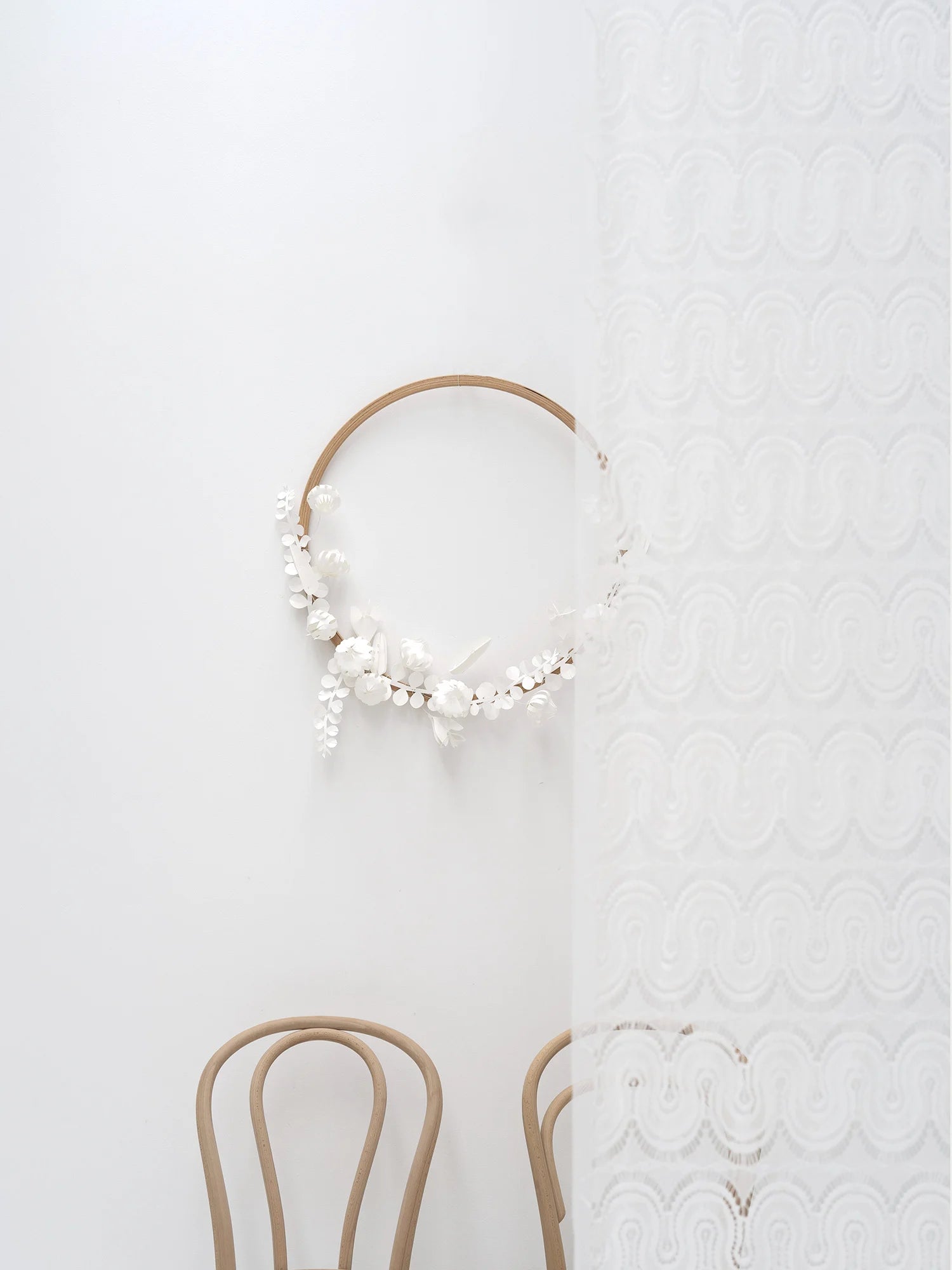 These white paper flowers are the perfect fit for a tranquil space with light earth tones and natural materials. And why not arrange them in a vase against a coloured wall, then step back and admire the results! FIELD white also works well as a wreath. Your little DIY project will make a minimalist statement in your living room, or as a unique decoration for your wedding venue.