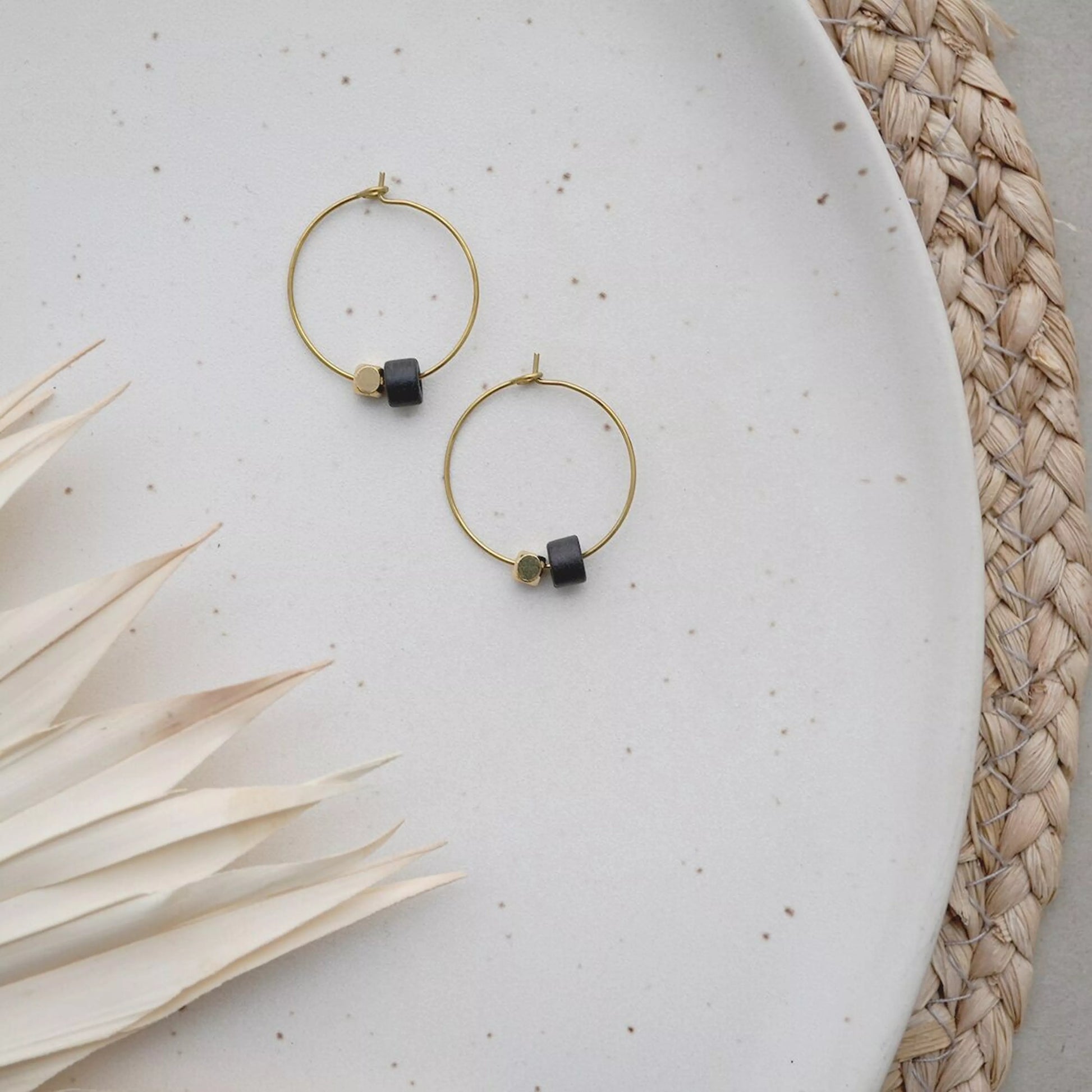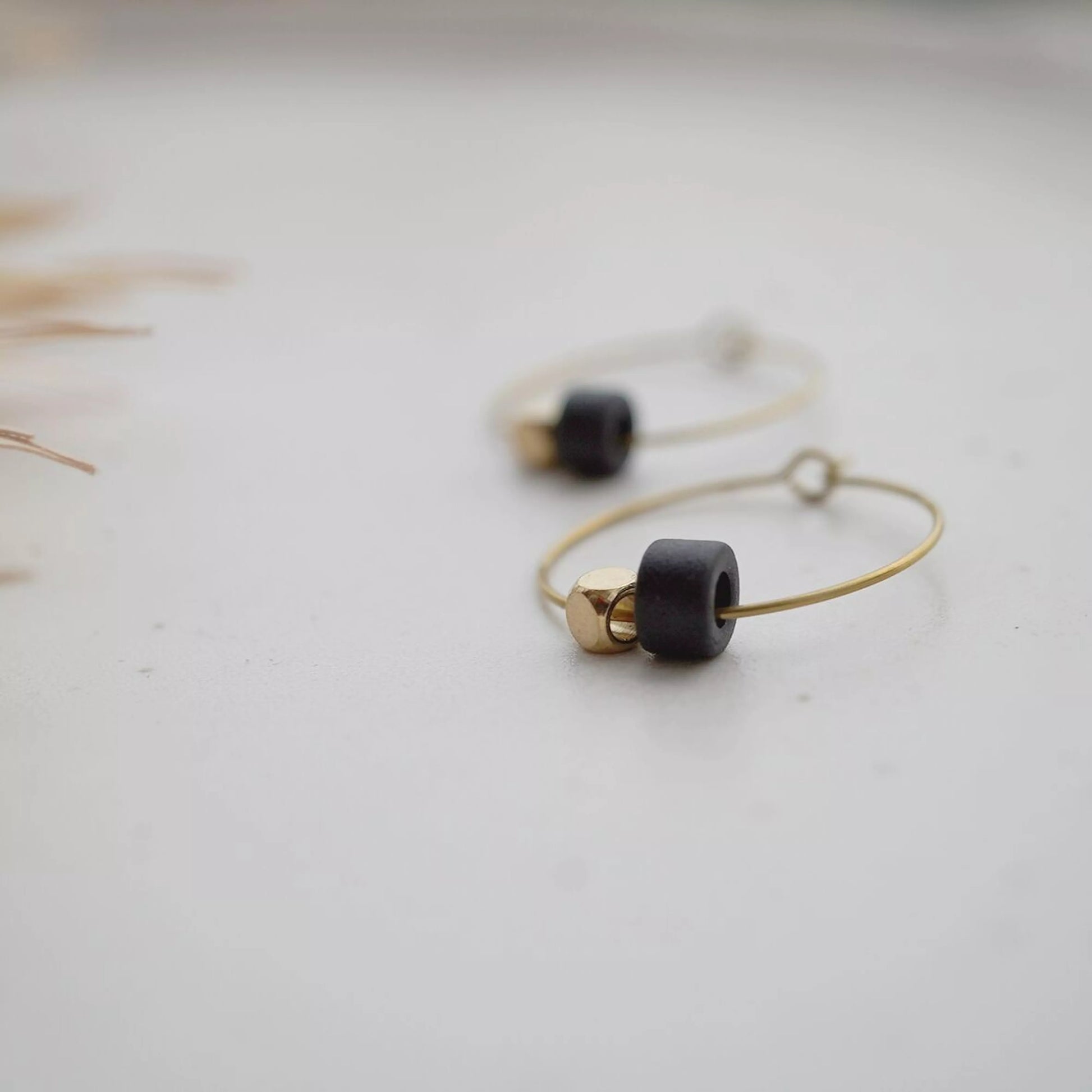 Feiner Ohrschmuck mit zarter Keramik und Messing, die Creolen verleihen Deinem Look das gewisse Etwas.