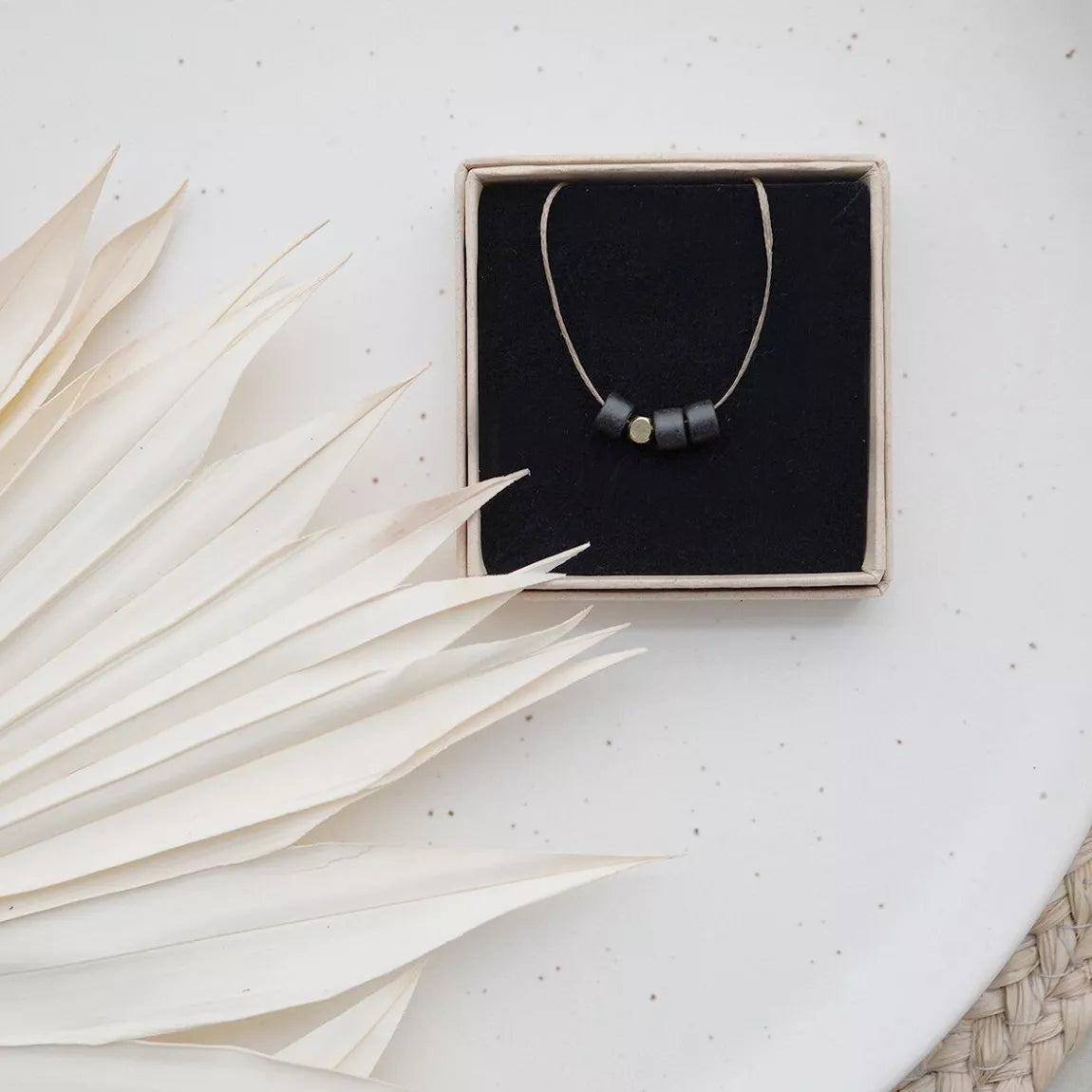 Feines Messing kombiniert mit matter Keramik- die stilvollen Ketten sind etwas ganz besonderes.