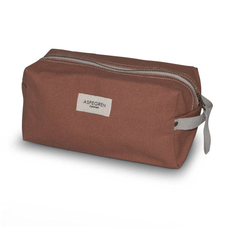 Cube Case S in Mano Mocha — eine umweltfreundliche Tasche aus strapazierfähigem, schwerem Leinenstoff. Mit ihren kompakten Abmessungen von 10 x 10 x 22 cm ist sie sowohl als Kulturtasche, Schminktasche als auch als Aufbewahrung für andere Kleinigkeiten unterwegs oder zu Hause praktisch.