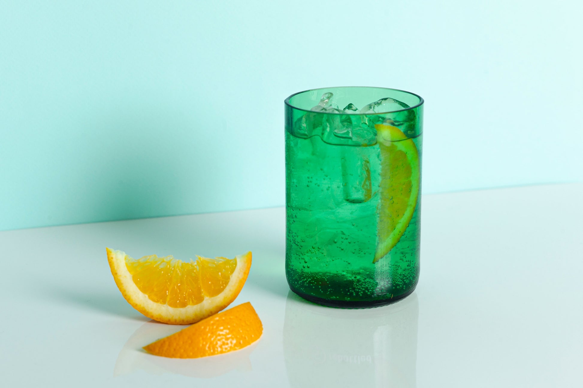 Jedes Glas ist ein Unikat und daher leicht unterschiedlich in Größe und Durchmesser. Die Trinkgläser haben allerlei verschiedene Details, die zeigen, dass es sich im früheren Leben um eine Flasche handelte. Der perfekte Icebreaker auf dem Tisch, wenn Sie nicht wissen, worüber Sie sprechen sollen.