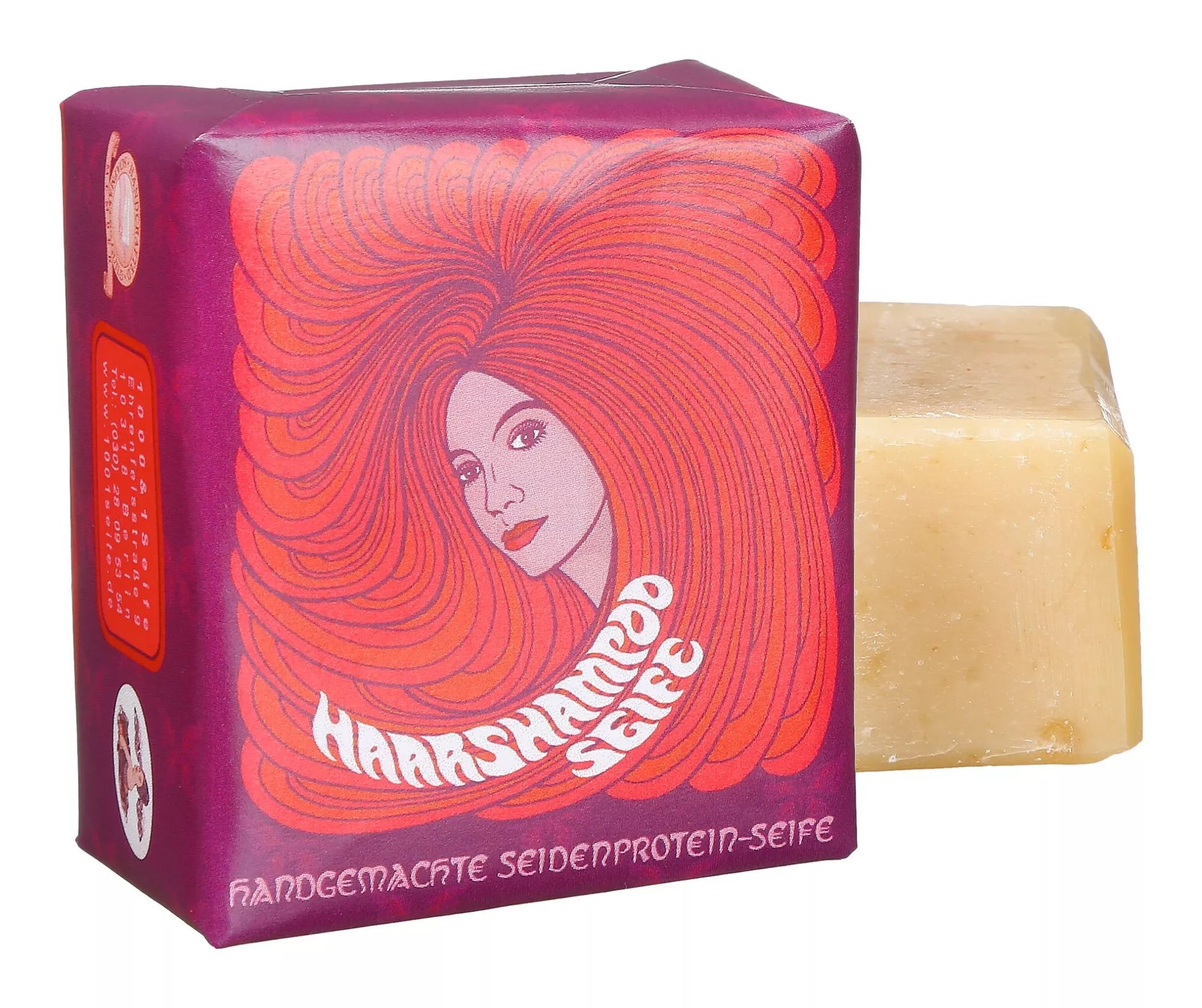 Reichhaltige Pflanzenölseife zur Haarwäsche mit haarpflegendem Honig und haarnährendem Eigelb sowie Seidenprotein zur Verbesserung der Kämmbarkeit.