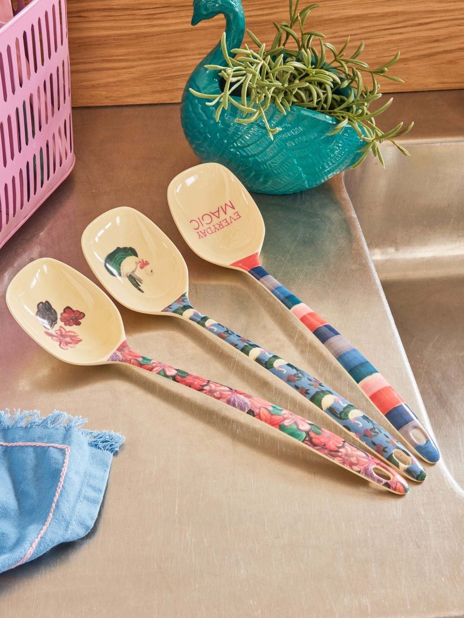 Mit unseren Melamin-Kochlöffeln mit den funky „A New York Minute“-Prints bringst du eine Prise Freude in deine Küche. Perfekt zum Umrühren deiner Lieblingsgerichte! Bitte denke daran, sie während des Kochens aus dem Topf zu nehmen.