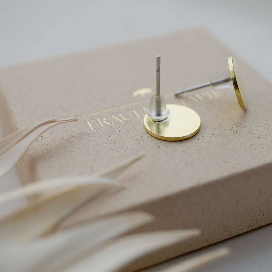Die Messingohrstecker erinnern an kleine Vollmonde und sind tolle Klassiker.