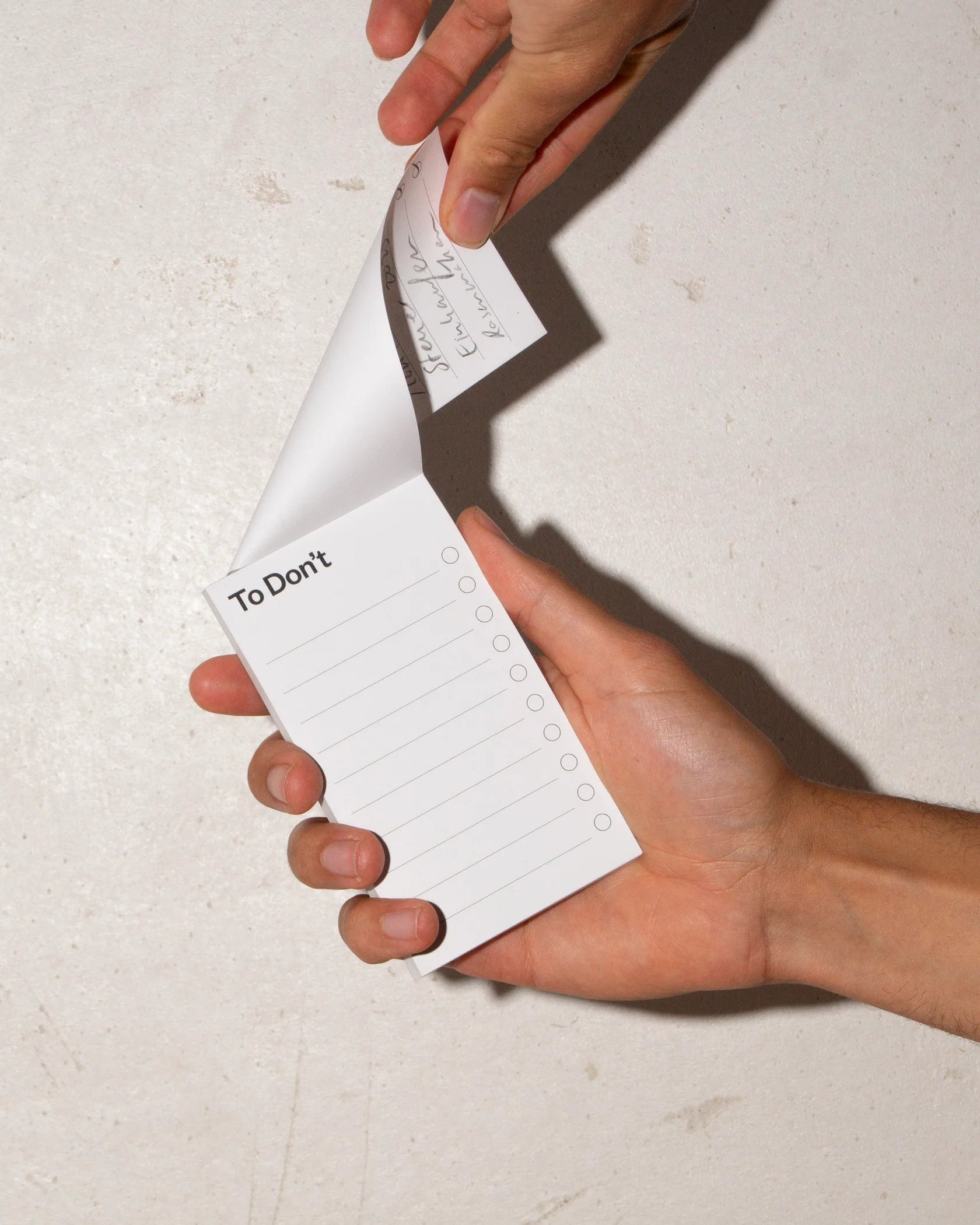 Gestresst und mal wieder zu viel zu tun? Die To Don’t Liste ist der perfekte Ort für alles, was du unbedingt vermeiden willst. Der handliche Notizblock bietet Platz für alles, was du dringend unerledigt lassen solltest. Schreib es auf, lehn dich zurück und konzentriere dich auf das Wesentliche: Nichts tun.