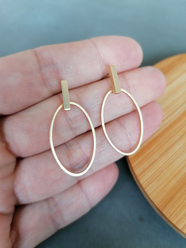 Stilvolle Ohrringe bestehend aus goldfarbenen Nieten und einer Ellipse