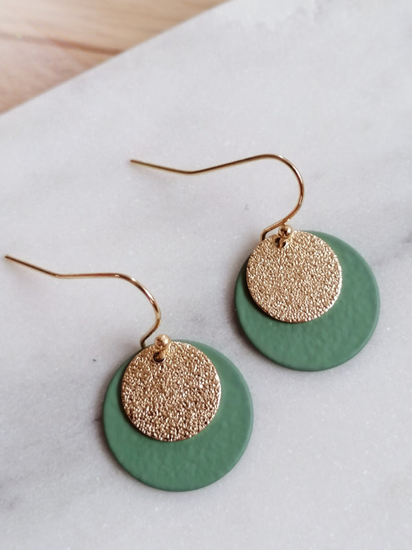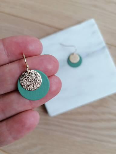 Schwarze Haken mit meergrüner Scheibe und rundem Goldanhänger