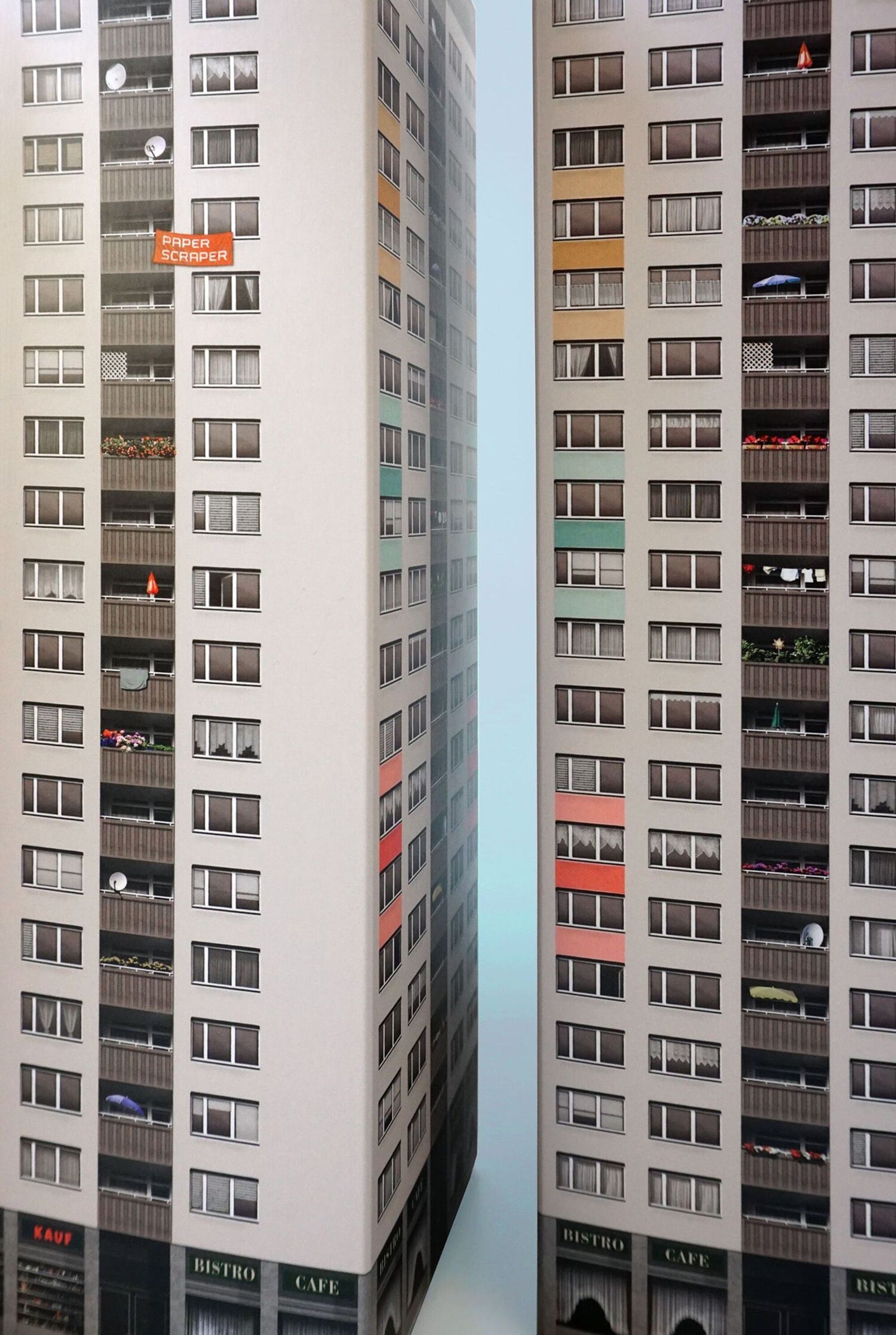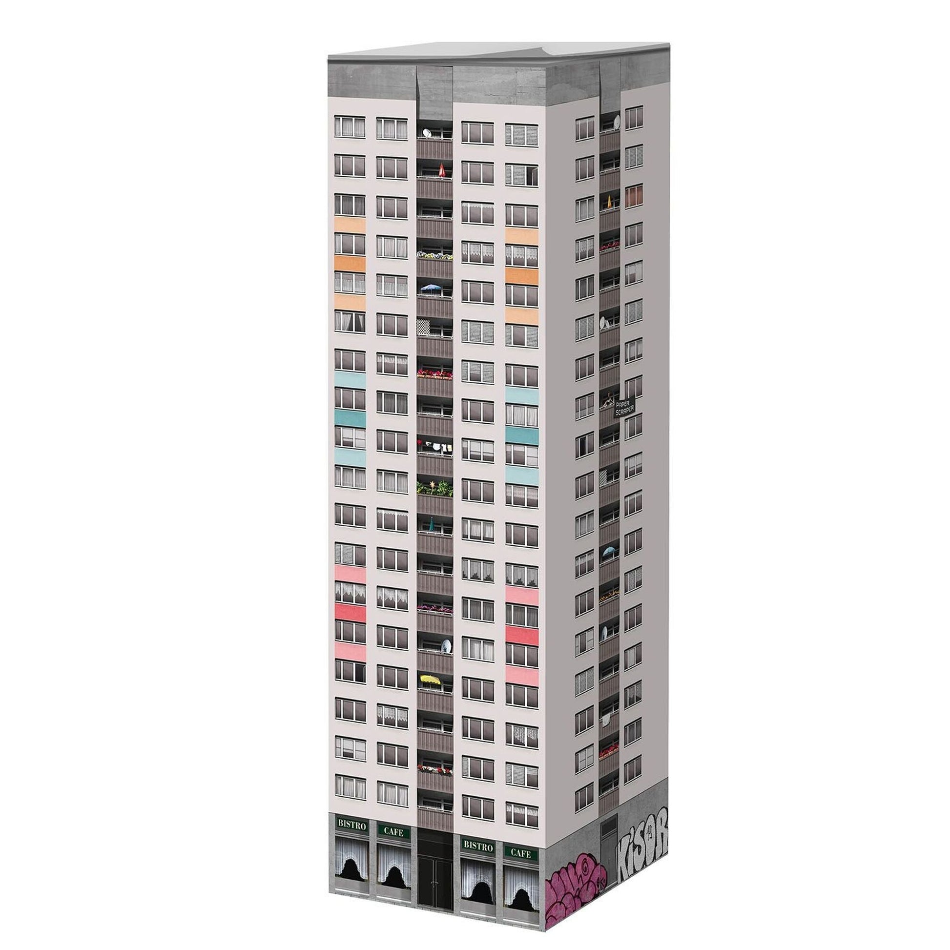 Dieser Plattenbau-Block ist eine Hommage an die Plattenbauten der 70er und 80er Jahre. Jeder kennt sie. Für den einen die größte Bausünde der Menschheit, für die anderen eine Ikone der Architektur. Aber eins ist unbestritten, für unsere Paperscraper® gibt es keine bessere Vorlage!