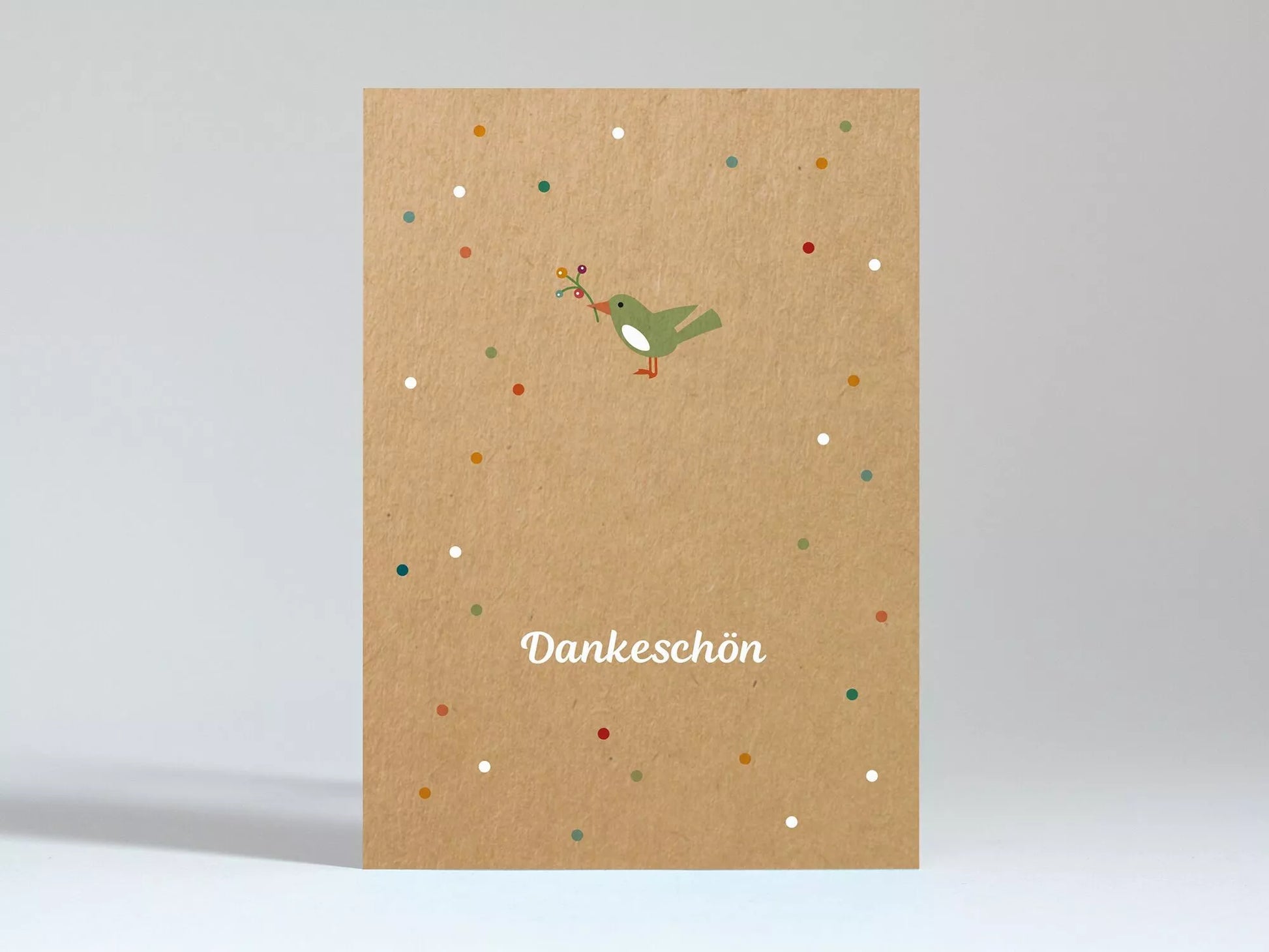 Fröhliche Karte, um „Danke“ zu sagen. Gedruckt auf hochwertigem braunem Kraftkarton, Kartenrückseite blanco.
