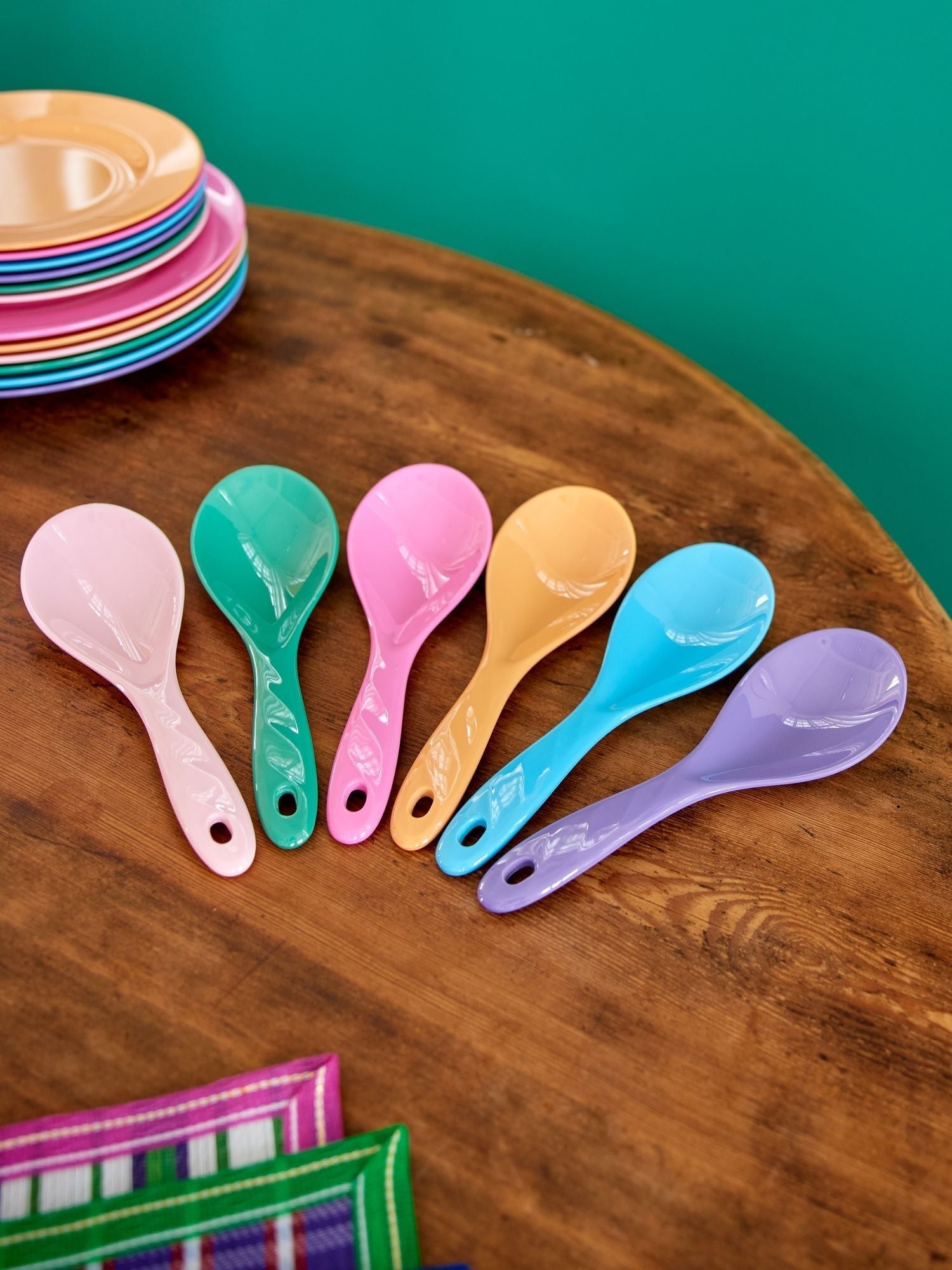 Genieße deine Salate mit diesen farbenfrohen Salatlöffeln! Unsere wunderbaren Melamin-Salatlöffel, im 6er-Set mit den Farben von "La Joie De Vivre", sind perfekt für jeden Anlass... nutze sie für Picknicks, Partys oder einfach als deinen Standard-Salatlöffel! Sie bringen wirklich einen Hauch von Spaß und Pepp in deine Mahlzeiten.