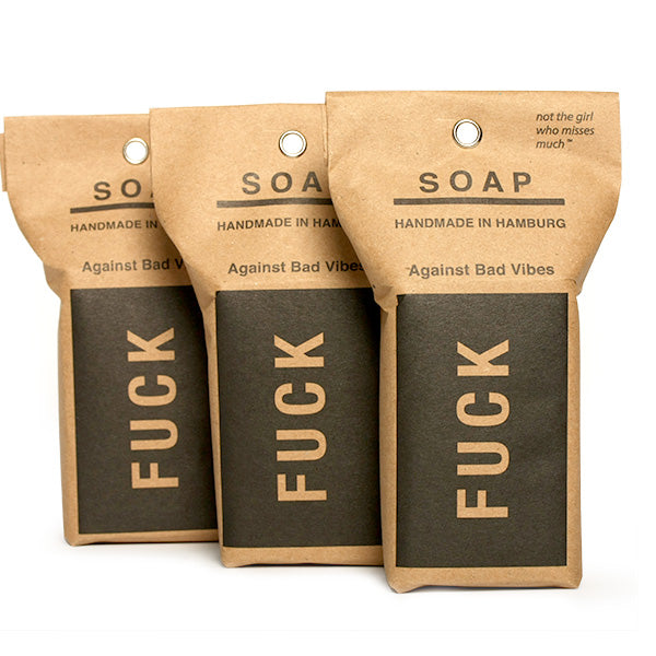 Manchmal helfen klare Botschaften. Die Seife riecht herrlich herbe nach heimischer Zeder. Wir glauben, Duft und Seife vertreiben schlechte Energie. Ein Versuch ist es wert.