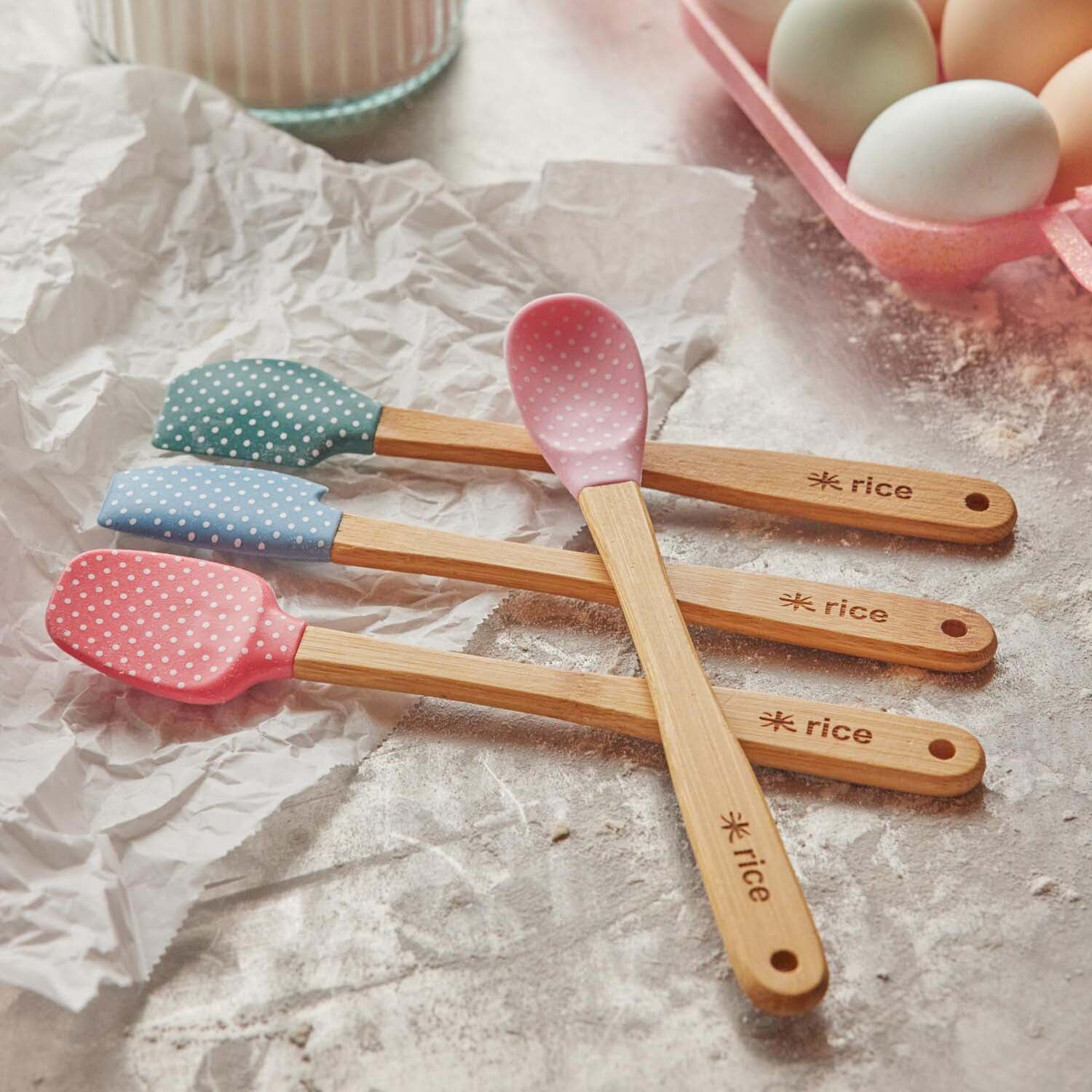 Diese vier kleinen Silikonschaber peppen garantiert jede Küche auf. Mit den wunderschönen Farben und Streifen kombinierst du mit ihnen im Handumdrehen Kochen & Magie! Diese Schönheiten haben einen Bambusgriff und sind einfach unwiderstehlich!